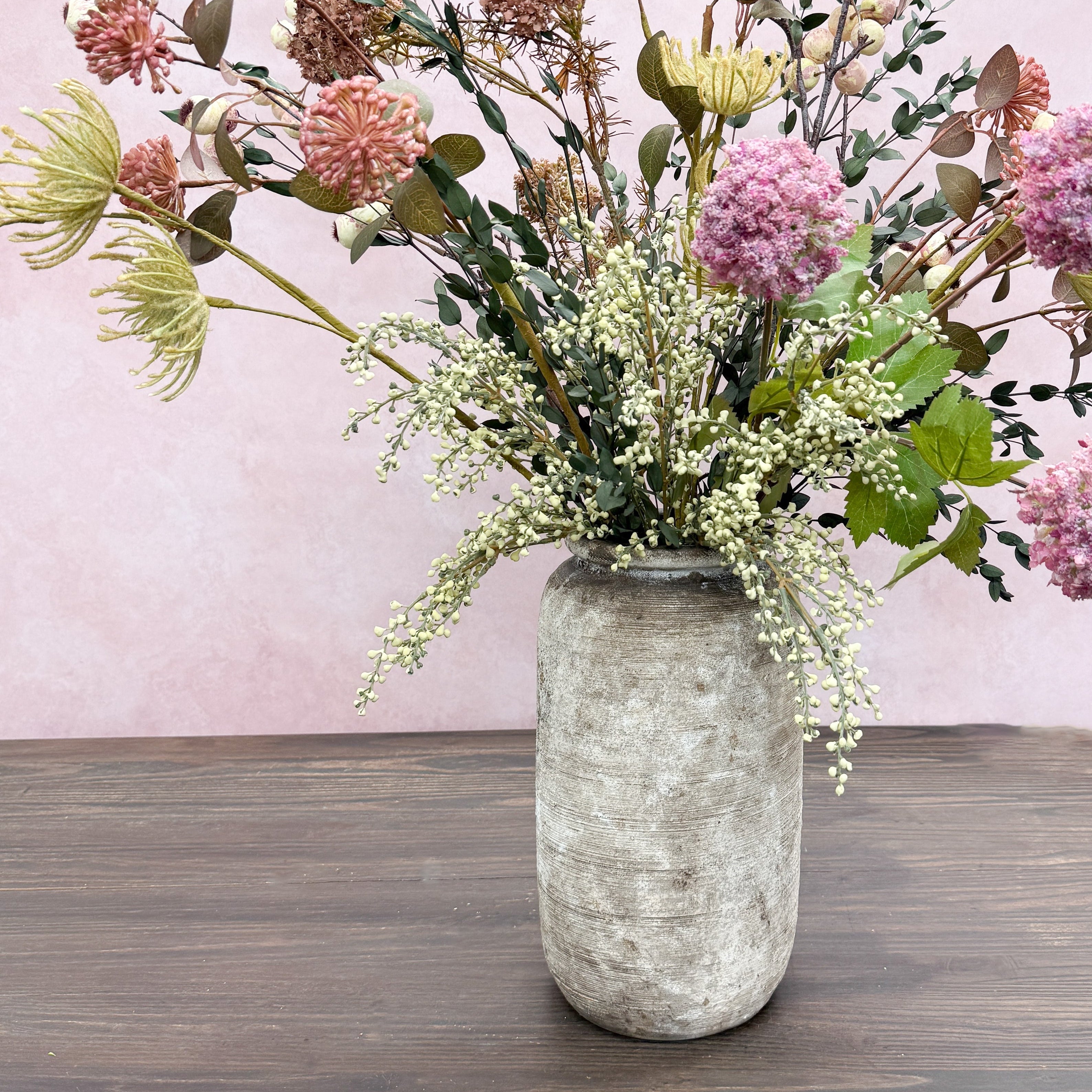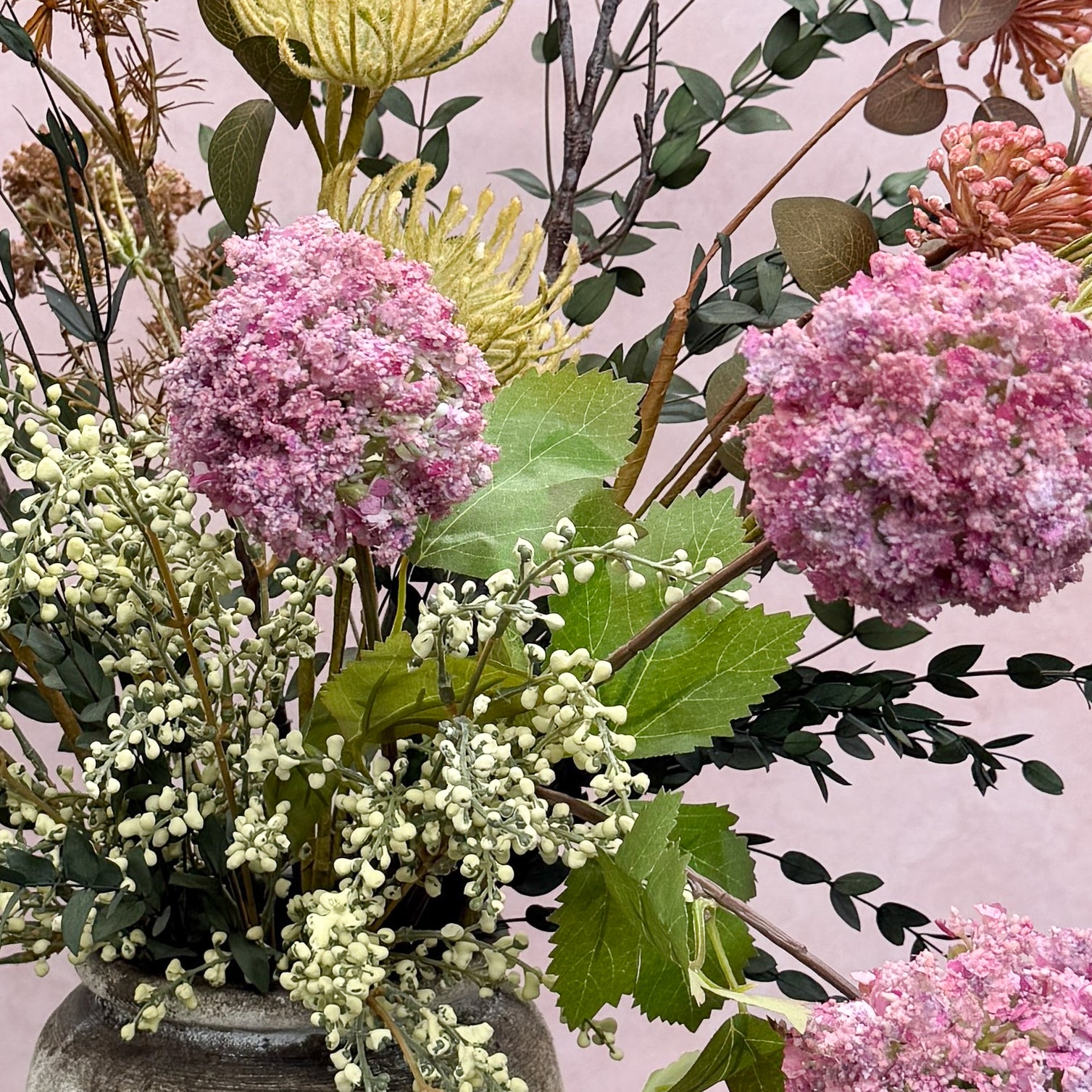 A large arrangement of everlasting blooms and foliage. Our floral designer has combined dried and faux pieces to create texture and tone.
