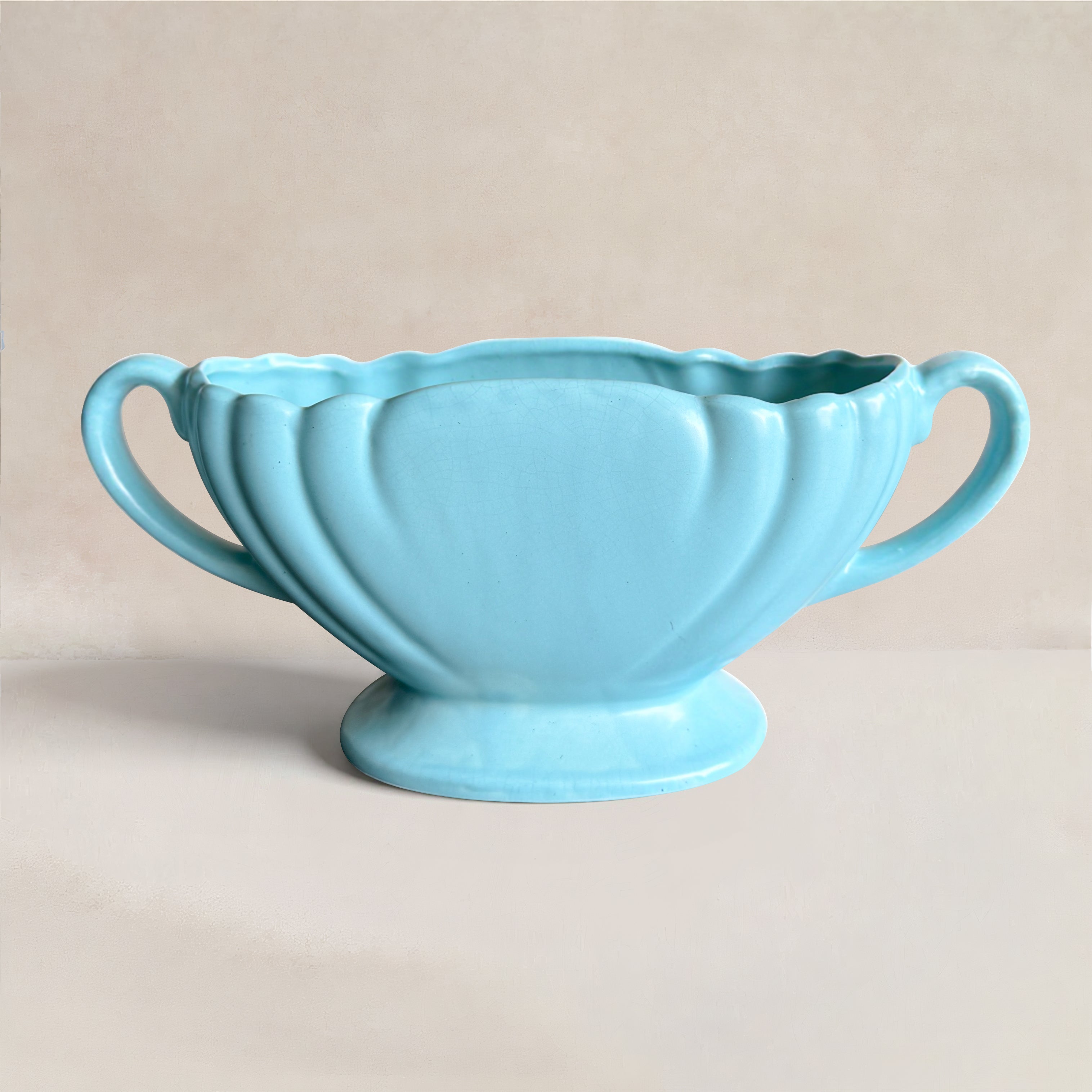 Wisley is a large aqua mantle vase by Dartmouth Pottery, Devon. Its elegant curves and soft glaze make it a statement piece, perfect for flowers or as a decorative accent.